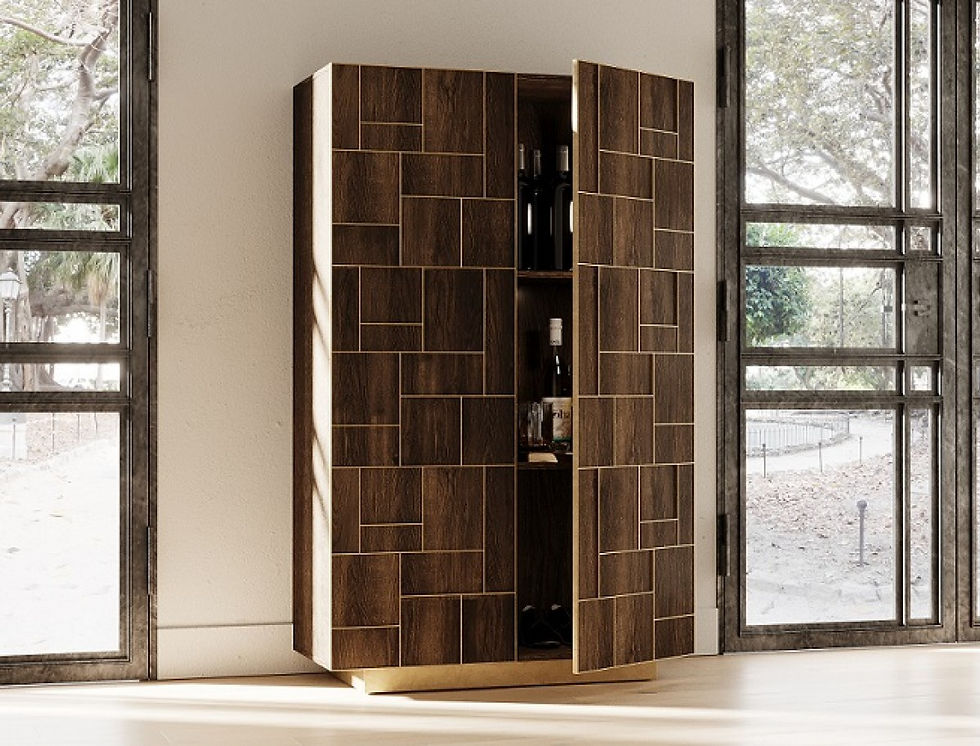 Modrest Auer- Brown Oak & Gold Wine Rack Cabinet